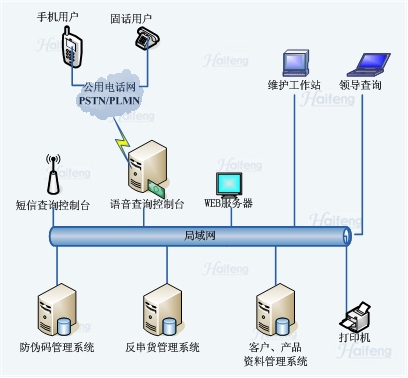 电话防伪查询系统是运用了现代计算机技术、网络通讯技术、信息编码技术及现代管理技术进行防伪的一个计算机电话集成系统工程。它把先进的计算机技术、网络技术和通讯技术融为一体,它能使CT模块:如信息、网络接口、媒体资源等,集成于一台PC中。消费者通过电话语音或网络,输入商品包装上的防伪码,系统便自动查询并即时告诉消费者商品的真伪,它大大方便了生产企业的市场管理,维护了经销商和消费者的利益,有效防止假冒,维护品牌价值,提升企业形象,从而提高企业的市场竞争力。
